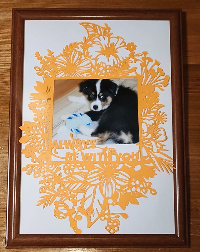 オレンジ色の色画用紙で作りました。 素人の手作業なので、紙の毛羽立ち等にご理解いただける方のみ宜しくお願いいたします。 額縁、写真(L判)は商品に含まれていません。 参考までにA4の額縁に入れています。 背景用色画用紙がご入用の方は、A4サイズ1枚20円でおつけいたします。 ご購入の前に、金額修正いたしますので、コメント欄からお知らせください。 お色は白、黒、紺色、ピンク、薄紫、赤、緑、黄色、パステル系などがございます。 その時々に、持っている画用紙が変わるので、コメントにてお尋ねくださいm(_ _)m #切り絵 #ハンドメイドアート #壁面飾り #幼稚園 #保育園 #老人ホーム #こども園 #施設 #ペーパークラフト #病院 #色紙 #植物 #動物 #飾り #色画用紙 #ポイント消化 #店内装飾 #装飾物 #POP #プレゼント #犬 #犬グッズ #猫 #猫グッズ #写真好き#フォトフレーム #フレーム #Miyu工房 #Miyu工房の切り絵