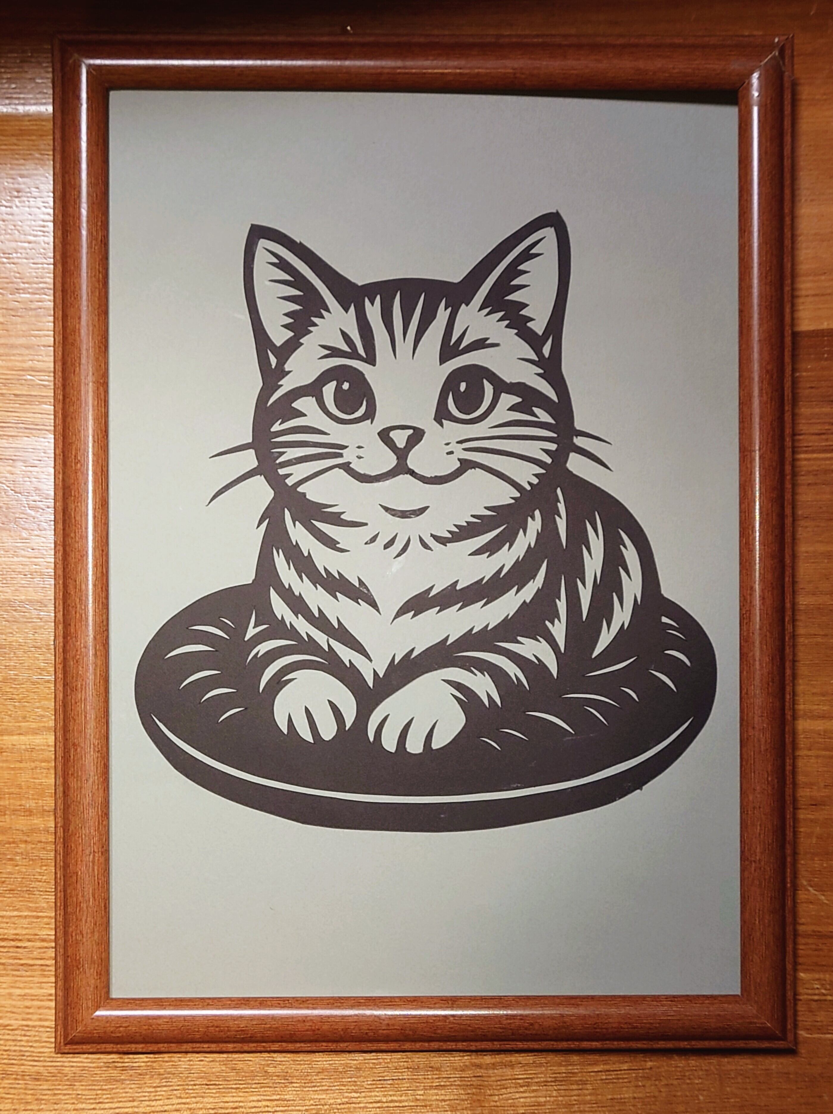 切り絵 クッション上の猫ちゃん(グレー)