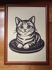 切り絵 クッション上の猫ちゃん(クリーム)