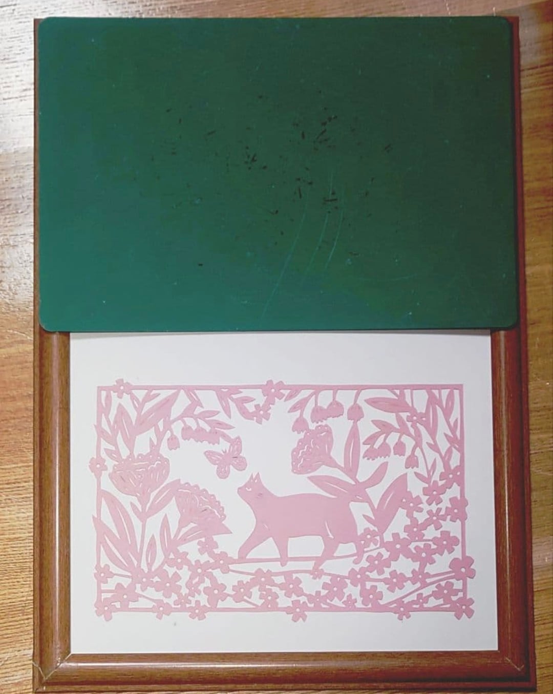 切り絵 猫ちゃんとお花(ピンク)