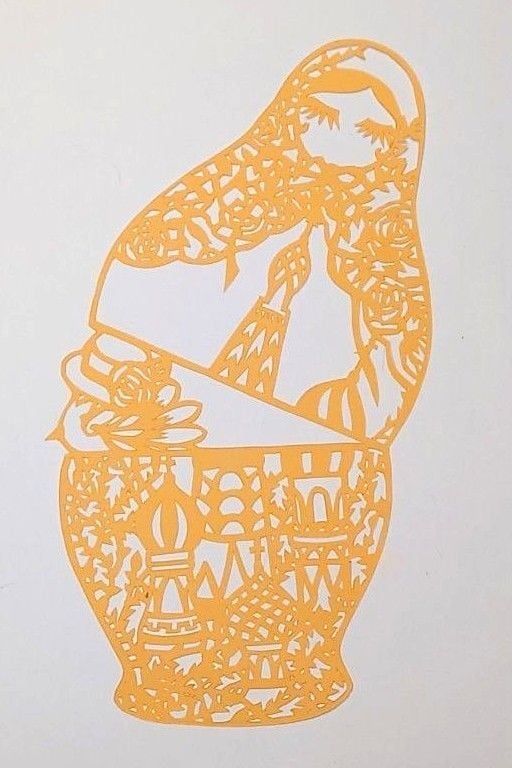 切り絵 マトリョーシカ (オレンジ)