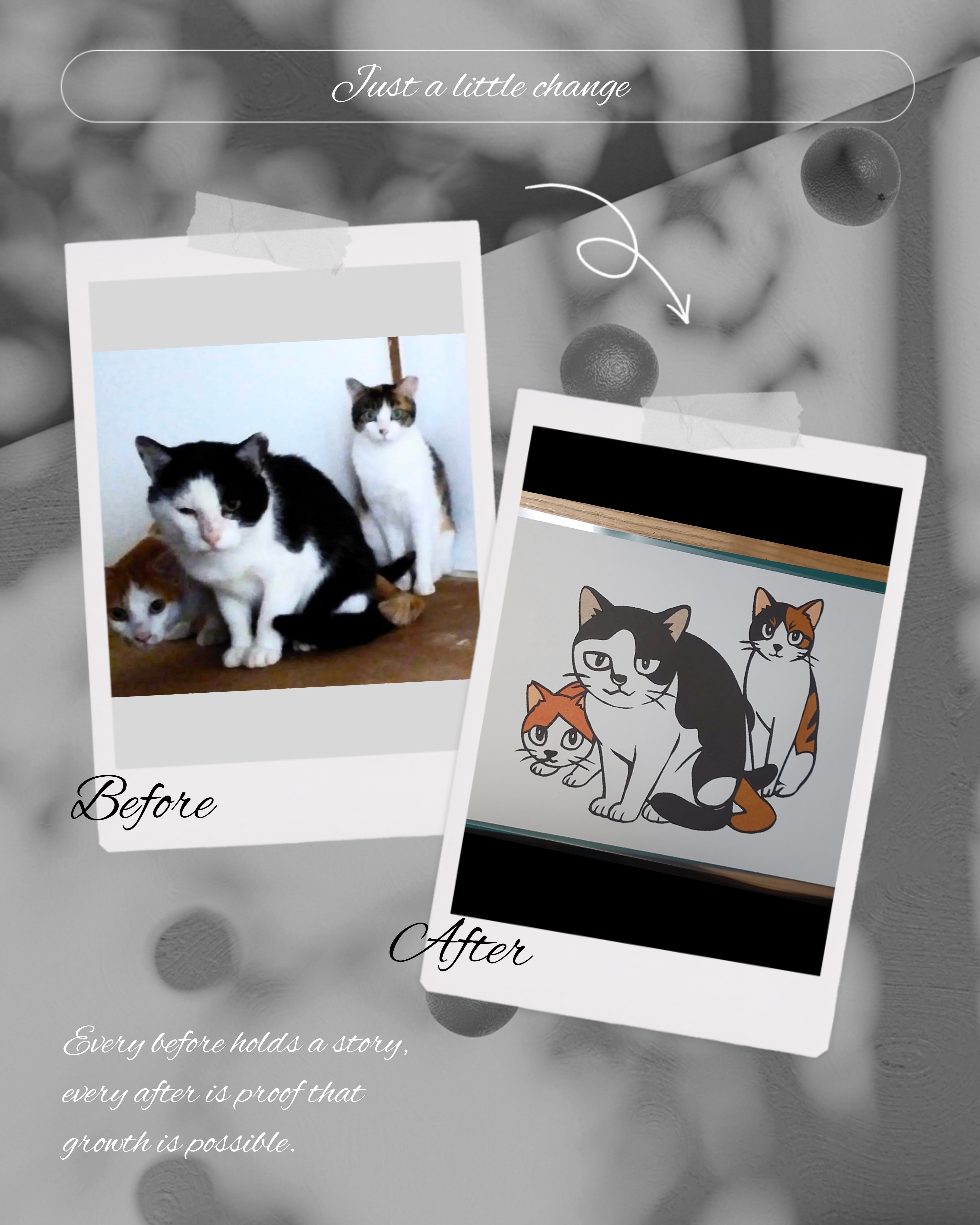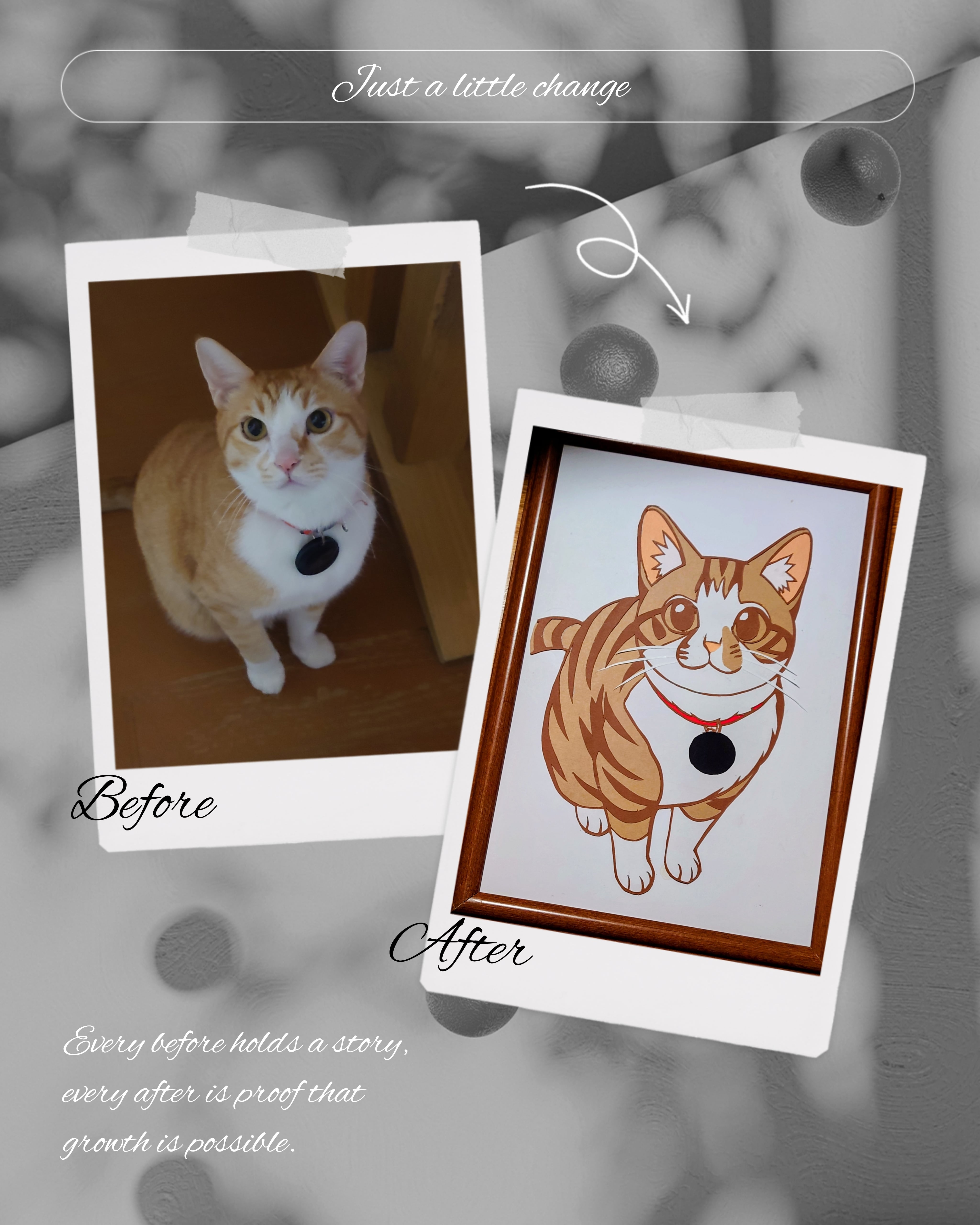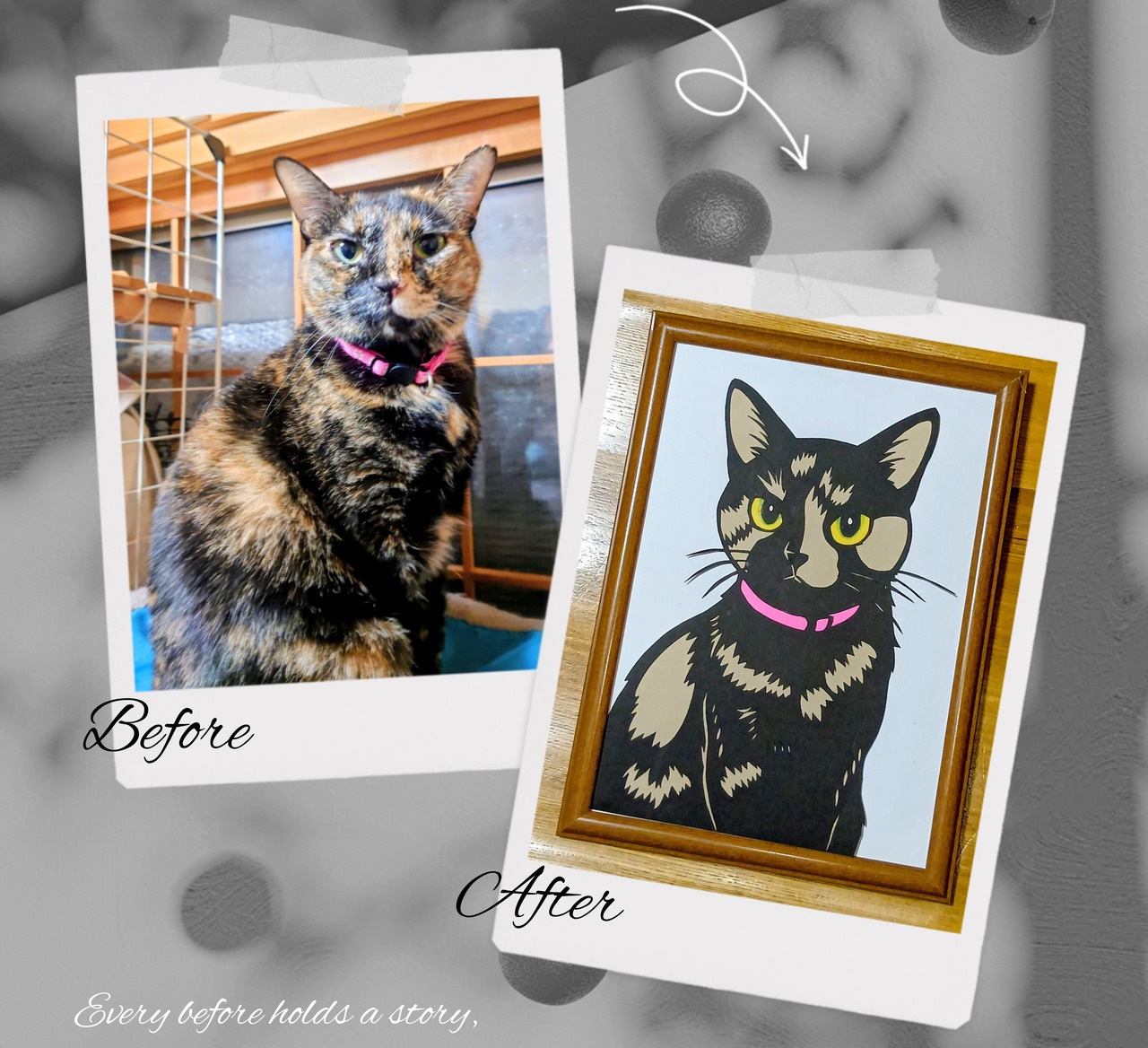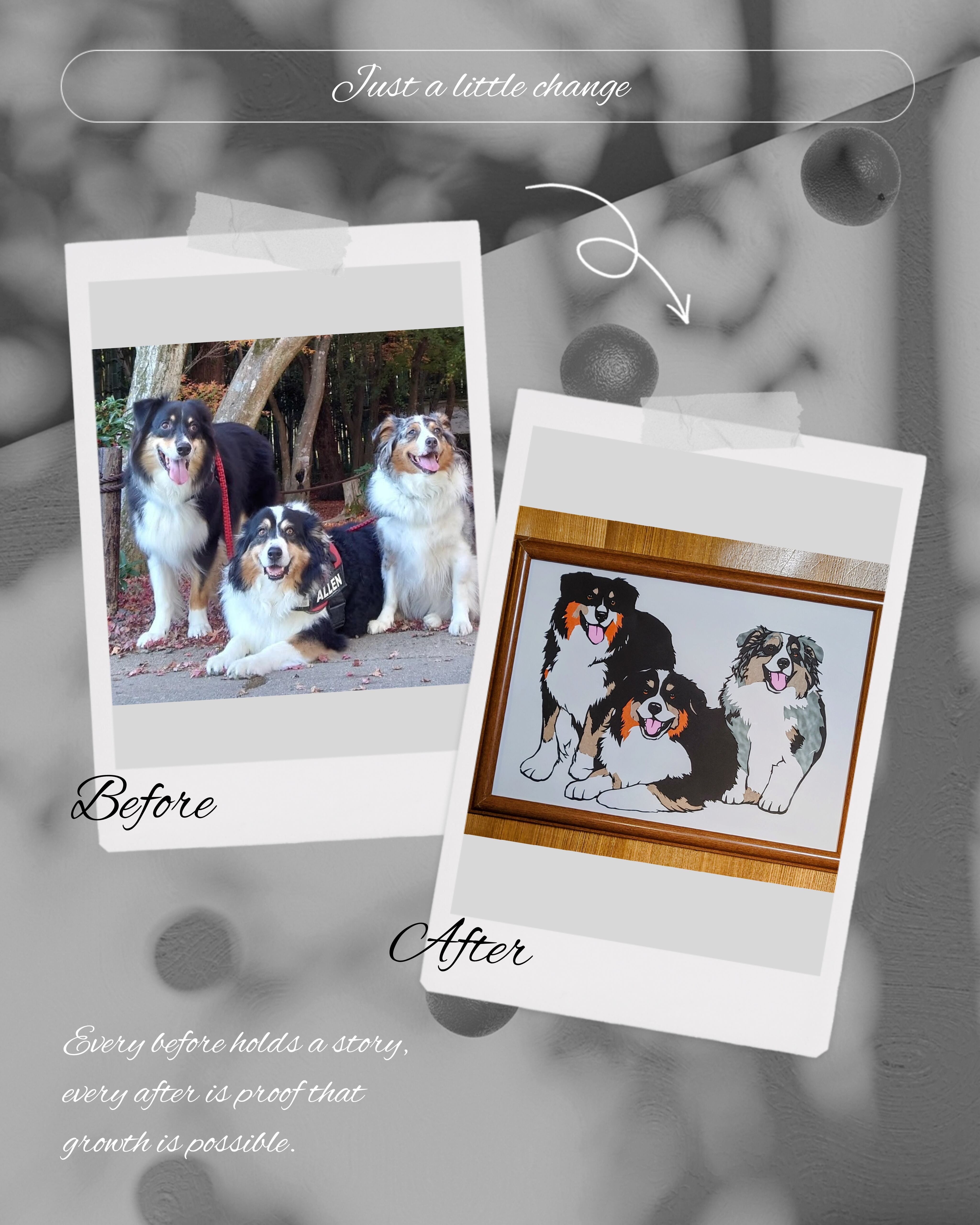 愛するペットや大切な思い出のワンシーンを、紙とアートナイフで表現し、温かみのある作品に仕上げます。
