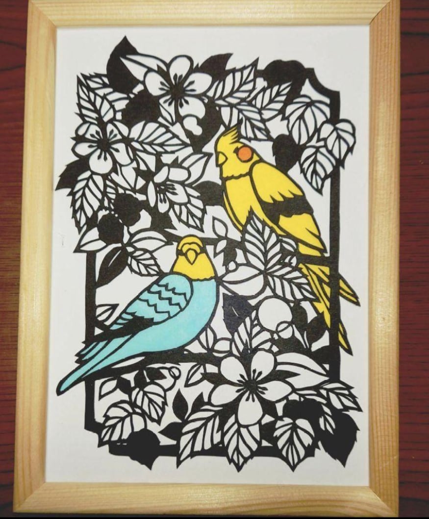 切り絵 オカメインコちゃんとセキセイインコちゃん