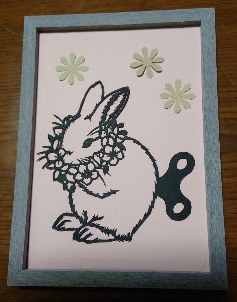 切り絵 すぐに飾れるフレーム付 うさぎのオモチャ